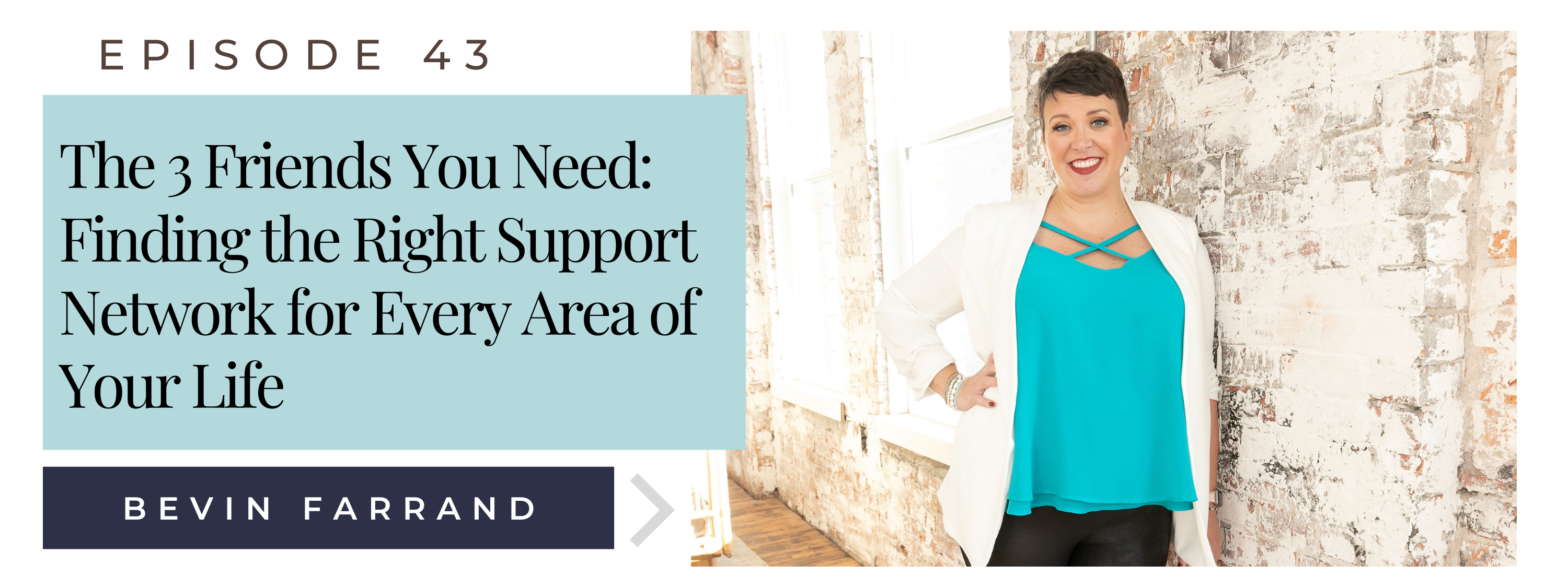 In this episode, our host, Bevin Farrand, emphasizes the importance of finding supportive individuals in each area of your life.