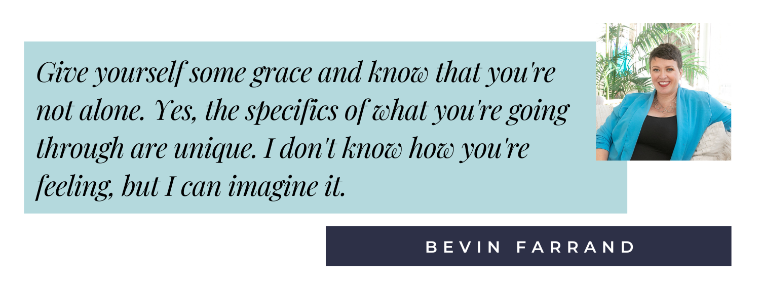 Grab your favorite cup of coffee or pour yourself a glass of wine and imagine sitting down with Bevin for a heartfelt and relatable conversation.