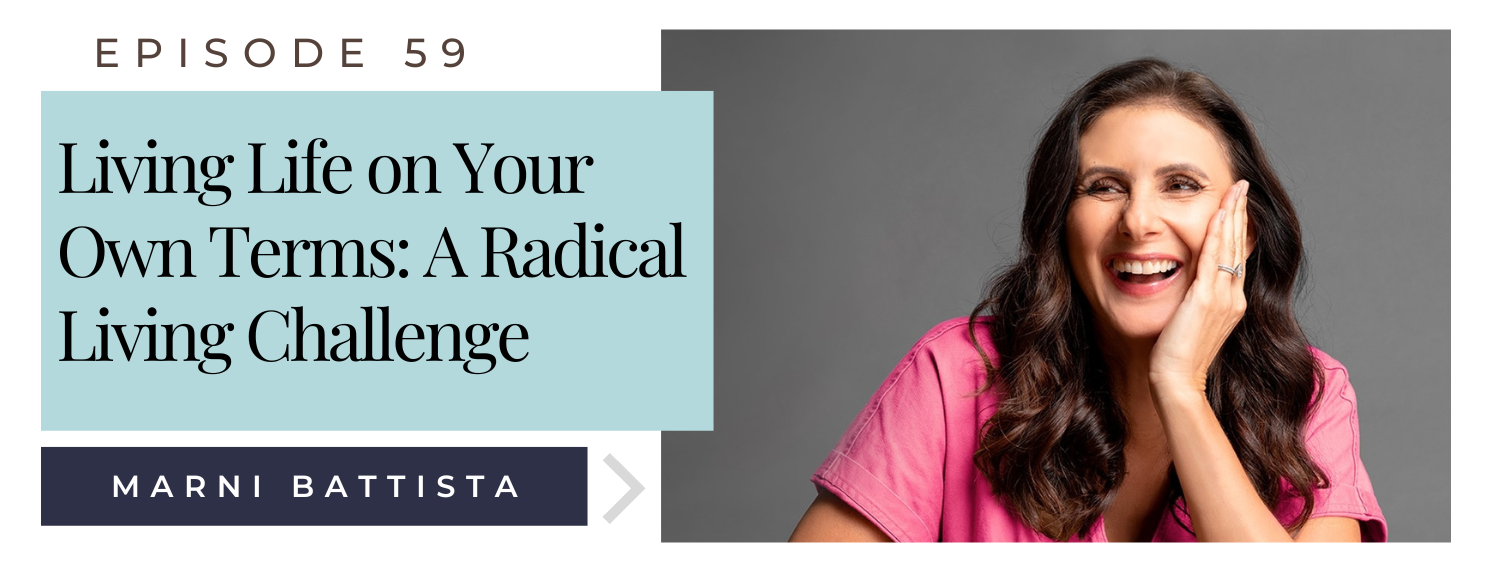 Marni Battista is the founder of The Institute for Living Courageously and Dating with Dignity. She is a courageous and inspiring individual who is dedicated to helping others live a life of meaning and fulfillment. With a diverse career and a passion for personal growth, Marni and her husband embarked on a new adventure in 2021, choosing to live life on their own terms. They started the Radical Living Challenge, designing a life that is a true expression of their souls.